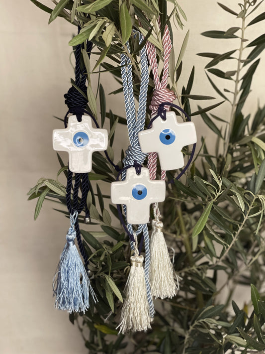 Ceramic Evil Eye Lucky Charm Decor (White and Pink)